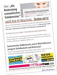 Damit steigt auch die Bedeutung von Domains: Sie müssen auffallen, neugierig machen und bestmöglich sichtbar sein. Irgendwelche "Konstrukte" reichen nicht mehr - semantische e Mail Adressen und SubDomains sind eine sehr viel bessere Lösung!